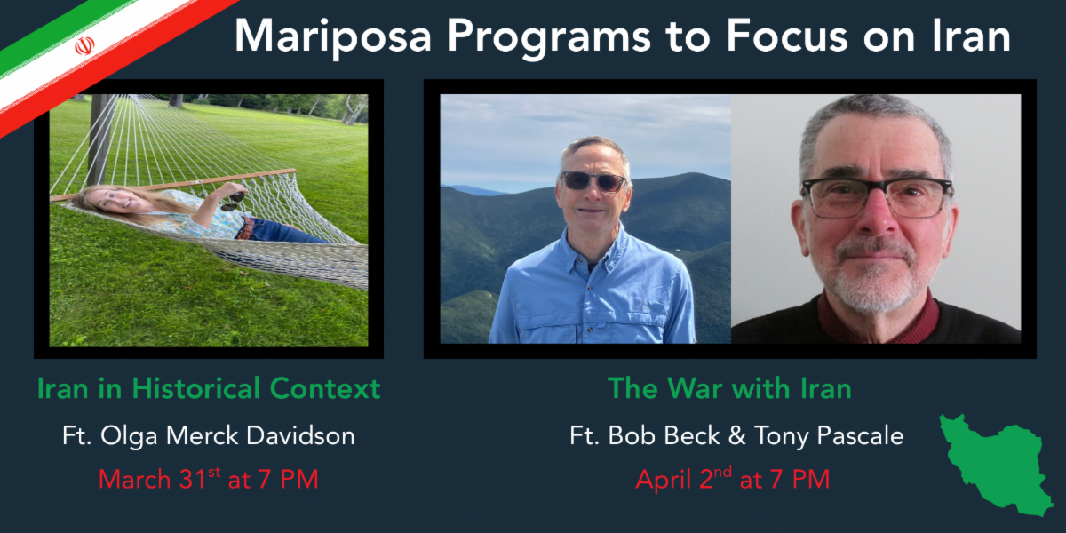Iran will be the subject of two programs at the Mariposa Museum in Peterborough next week.